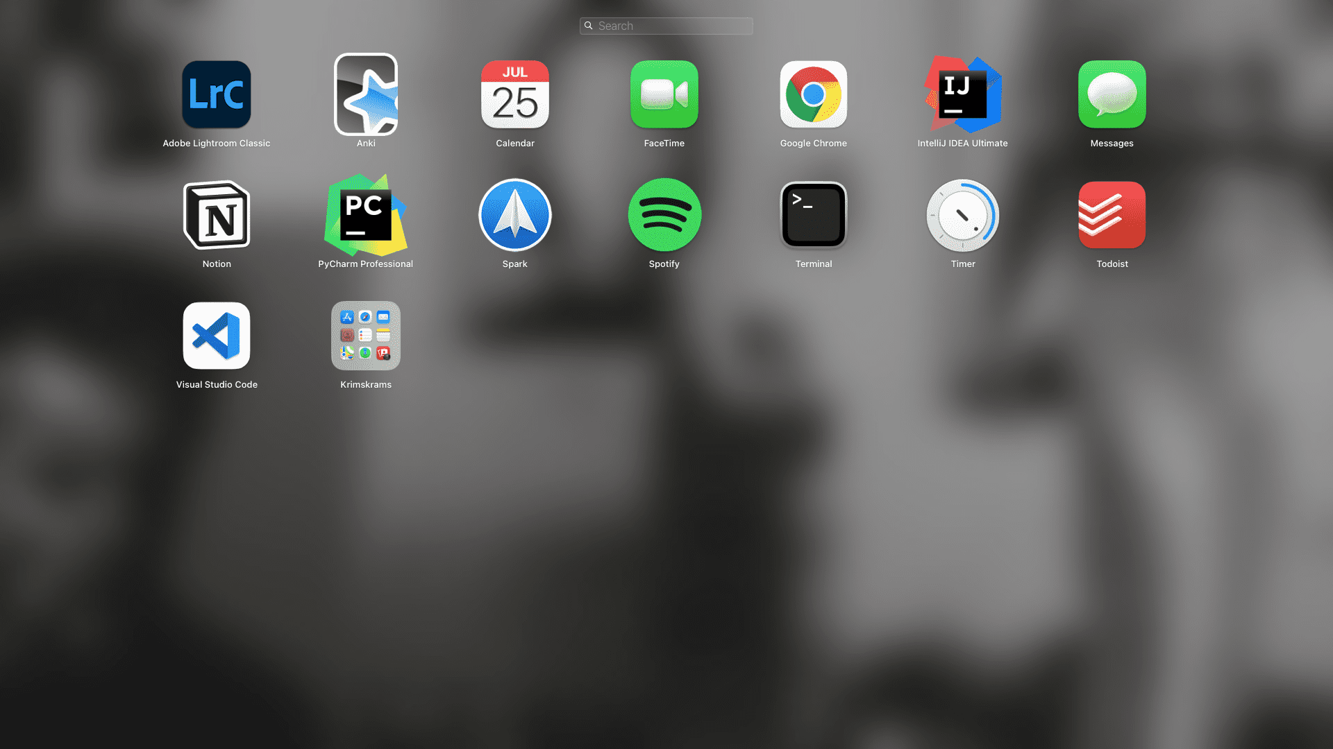 # Create minimalist file/project organisation $ cd developer $ mkdir Projects Uni $ cd # Set up git $ git config --global user.name "your_github_username" # Install CLT for Xcode $ xcode-select --install # Create zsh config file $ touch ~/.zshrc # Install Homebrew $ /bin/zsh -c "$(curl -fsSL https://raw.githubusercontent.com/Homebrew/install/master/install.sh)" $ brew update # Install mackup $ brew install mackup # Clone dotfiles repository $ vim ~/.mackup.cfg # Set storage in mackup cfg file [storage] engine = file_system path = path/to/dotfiles directoy = Mackup $ mackup restore # Download & install oh-my-zsh sh -c "$(curl -fsSL https://raw.github.com/ohmyzsh/ohmyzsh/master/tools/install.sh)" # Install node version manager $ curl -o- https://raw.githubusercontent.com/nvm-sh/nvm/v0.38.0/install.sh | zsh # Install node $ nvm install node $ nvm use node # Install yarn $ npm i -g yarn- Install the applications you need. Don't open most of them just yet as Mackup will restore them. I usually go with this order: